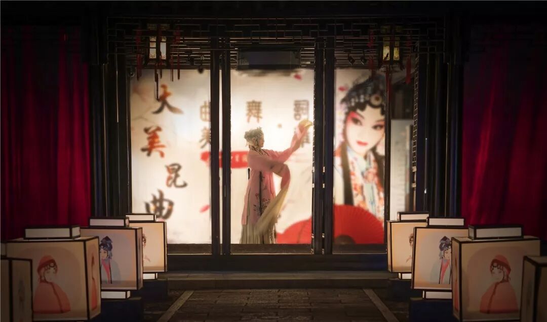 夜幕轻坠,花香点点,寻着轻吟浅唱,步入清风明月古戏台,听一曲戏曲,深入感受夜色周庄的美好时光。台上活色生香,台下渐入佳境,恍然不知今夕何夕。