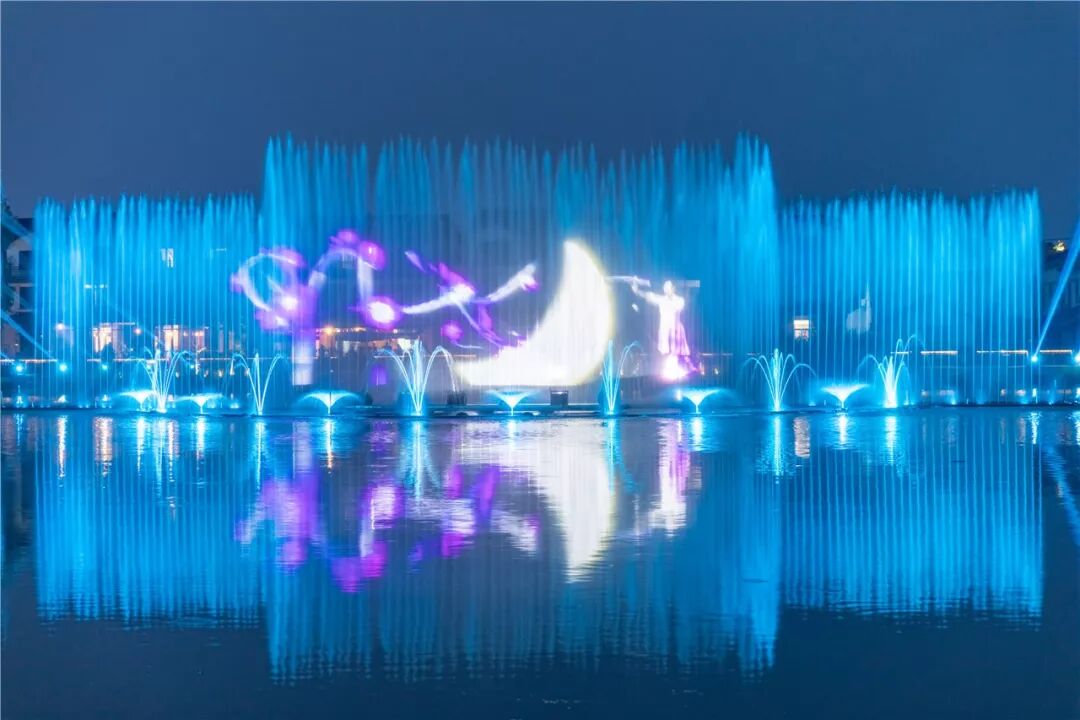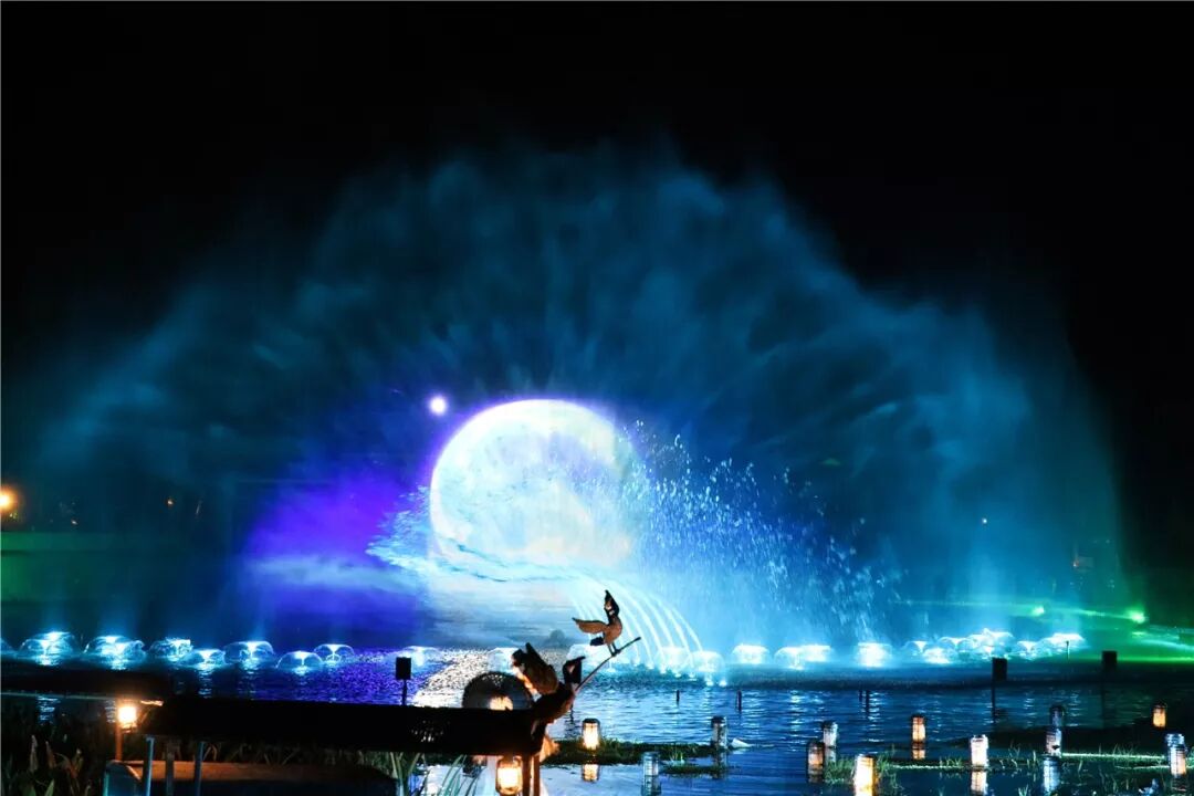 渔歌清唱,划桨出船,打卡蚬江湾,欣赏一场光影秀。水幕里,一位悠悠的老者撑蒿前行,鱼鹰雄立船头,水乡渔猎风情变得立体和鲜活起来。