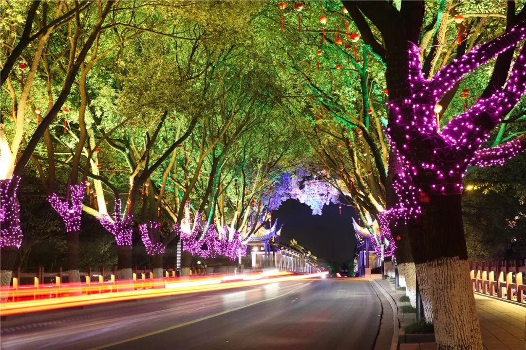 泛着灯影的粼粼波光如细碎的星河,依旧是春秋前那般温婉模样。水巷里的灯船将古镇照亮,古桥边的光与影,勾勒出夜的神韵。